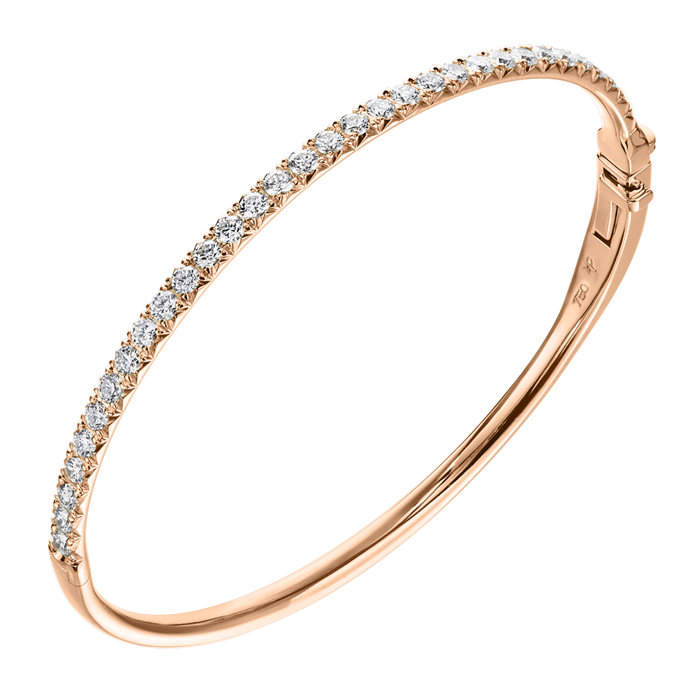 18 karat rose gold Essentials bangle bracelet with 31 round brilliant cut diamonds weighing 1.72 carats.