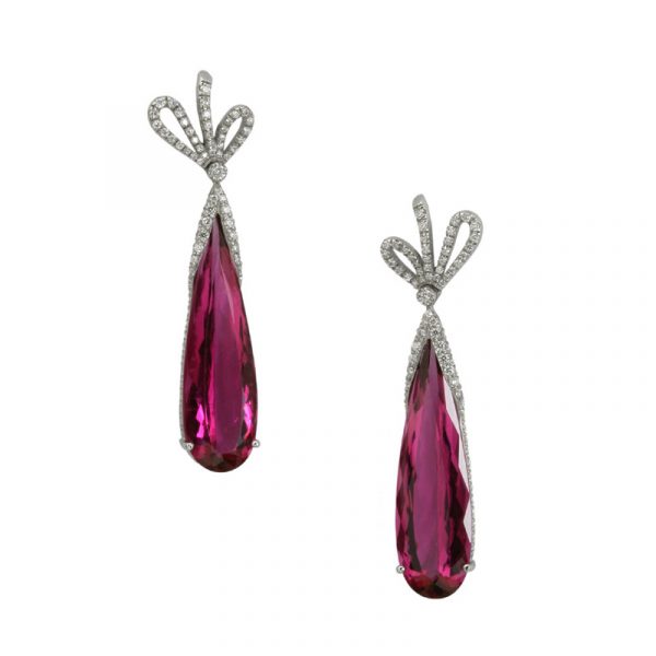 18 Karat white gold earrings with matching rubellites weighing 12.69 carats and diamonds