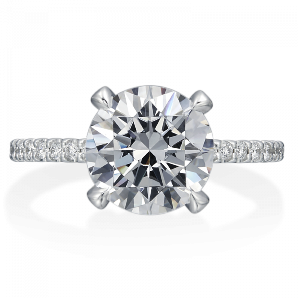 This platinum engagement ring features diamonds set along the prongs and the band, there are 48 round diamonds weighing a total of 0.30 carats. Suggested Retail Price does not include center diamond and may vary according to customization.