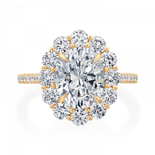 <i class="icon-refresh"></i><span class="ftc-tooltip button-tooltip">Compare</span>This beautiful 18 karat yellow gold engagement ring features 30 round, brilliant-cut diamonds weighing a total of 1.26 carats set along the halo and halfway down the shank. The diamonds in the halo are set with a unique “scalloped” edge giving off a floral effect. Also available in platinum, 18 karat white or rose gold.