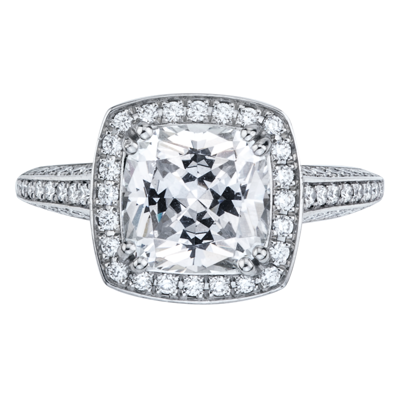 <i class="icon-refresh"></i><span class="ftc-tooltip button-tooltip">Compare</span>Three sided bead set platinum engagement ring with 126 round brilliant cut diamonds weighing 0.73 carats. Also available in 18 karat white, yellow or rose gold.