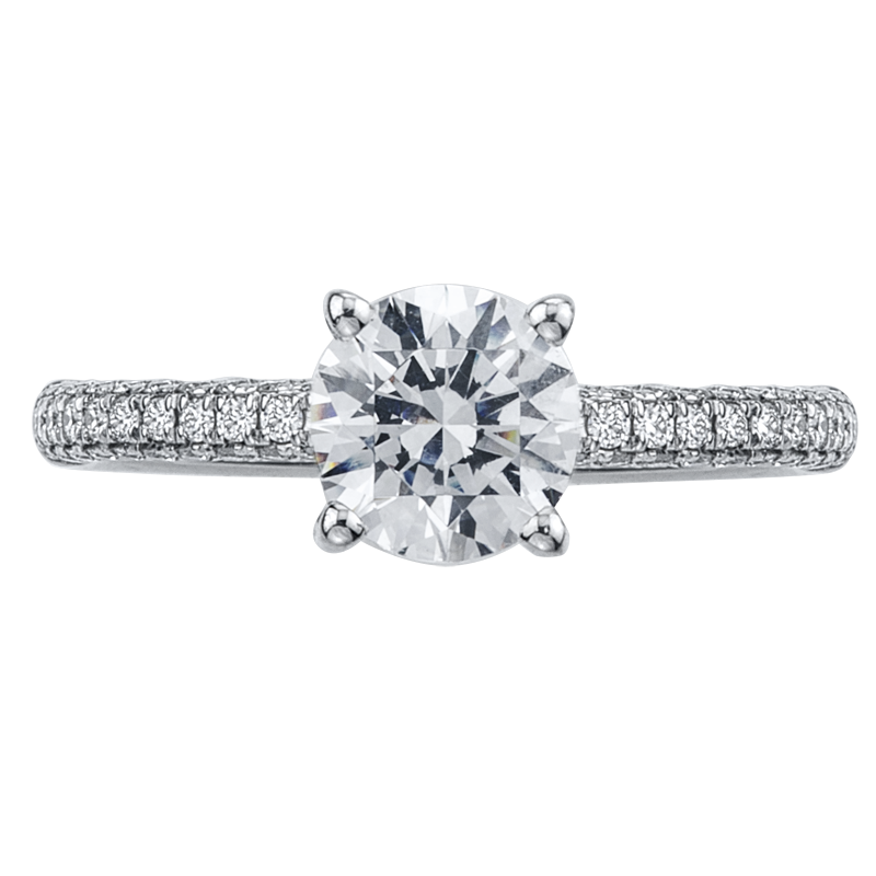<i class="icon-refresh"></i><span class="ftc-tooltip button-tooltip">Compare</span>This new delicately tailored platinum engagement ring features a three-row pave shank with 66 round brilliant cut diamonds weighing 0.37 carats. Also available in 18 karat white, yellow or rose gold.